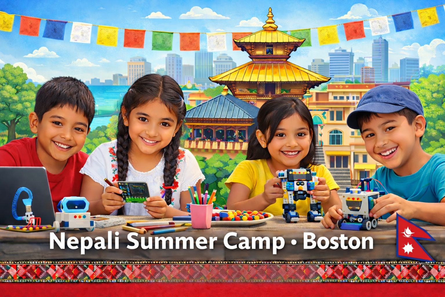 Nepali Camp Boston 2026 is a four-week, five-days-a-week summer program for children ages 8 to 12. We combine classic summer camp fun with hands-on learning in science and robotics, and a strong focus on the languages and cultures of Nepal and musical instruments.